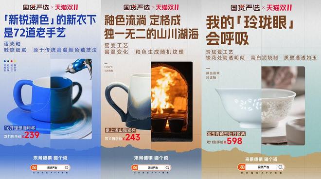 今年双 11 期间,记者在淘宝国货严选上看到,来自景德镇源头厂商的千余款特色餐具水具成为这届年轻人的特色新宠。